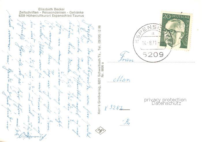 73673288 alte Postkarte Espenschied Panorama Blick ins Wispertal Kleingolfplatz Dorfplatz postalisch gelaufen Erhaltung siehe scans [FriedD77] KatCode: 11110006439010