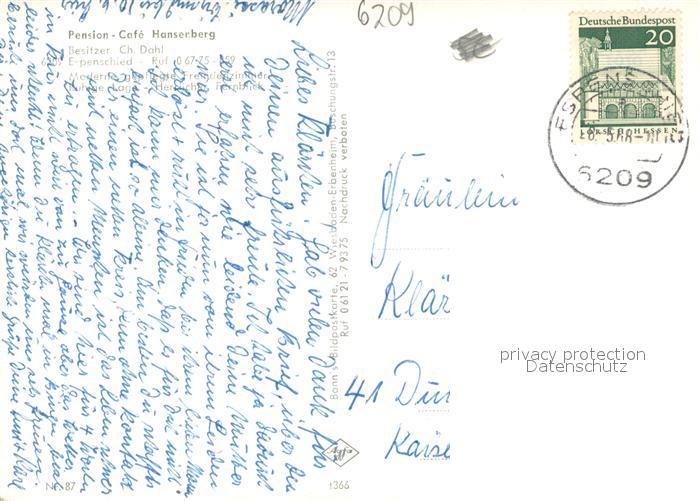 73708970 alte Postkarte Espenschied Pension-Cafe Hansenberg Innen- uns Aussenansicht postalisch gelaufen Erhaltung siehe scans [LiesaD40] KatCode: 11110006439010