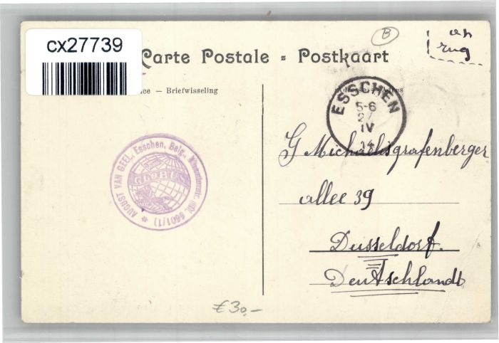 30882812 carte postale Esschen Ijzerenwegstraat postalisch gelaufen KatCode: 11070