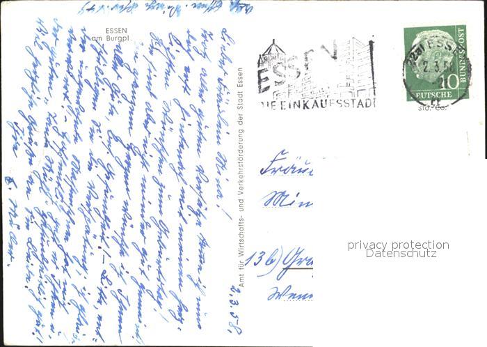 72475820 alte Postkarte Essen Ruhr Am Burgplatz postalisch gelaufen Erhaltung siehe scans KatCode: 11110005113000