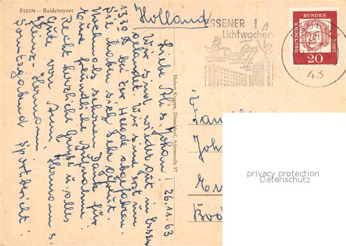 72930949 alte Postkarte Essen Ruhr Baldeneysee postalisch gelaufen Erhaltung siehe scans [WerneD78] KatCode: 11110005113000