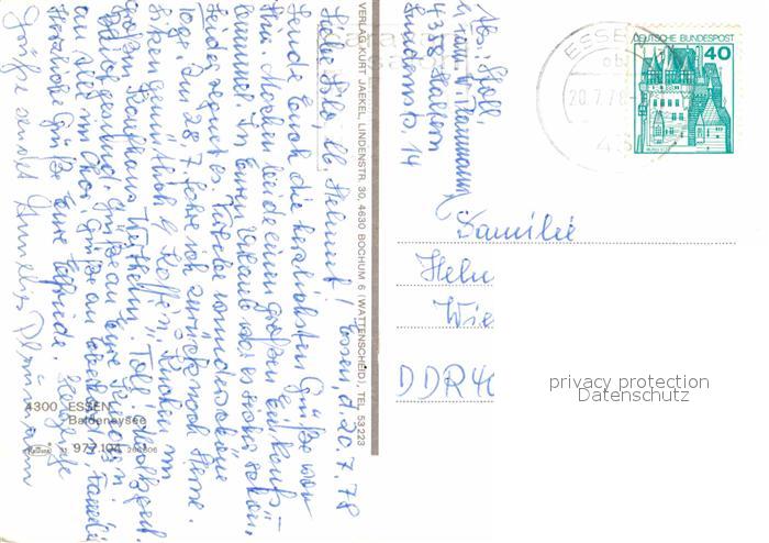 72843594 alte Postkarte Essen Ruhr Baldeneysee postalisch gelaufen Erhaltung siehe scans [LiesaD40] KatCode: 11110005113000