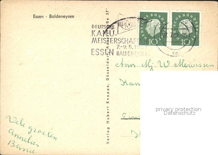 72435150 alte Postkarte Essen Ruhr Baldeneysee postalisch gelaufen Erhaltung siehe scans KatCode: 11110005113000