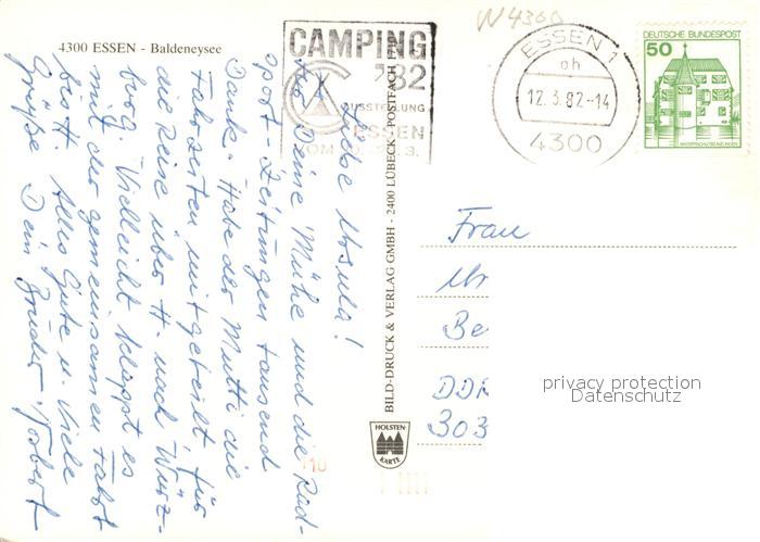 73618053 alte Postkarte Essen Ruhr Baldeneysee postalisch gelaufen Erhaltung siehe scans [KathaD81] KatCode: 11110005113000