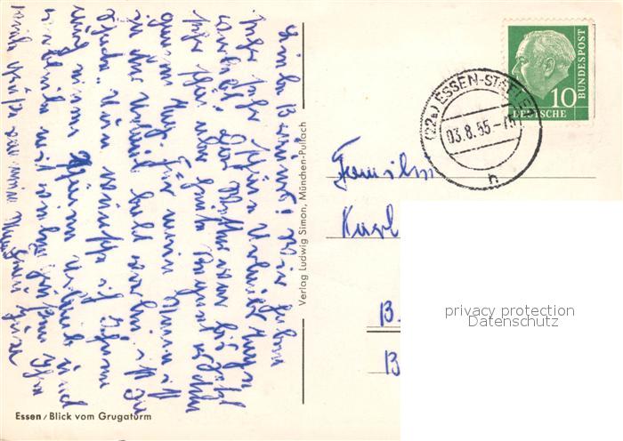 73167114 alte Postkarte Essen Ruhr Blick vom Grugaturm postalisch gelaufen Erhaltung siehe scans [WerneD78] KatCode: 11110005113000
