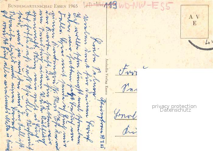 72904731 alte Postkarte Essen Ruhr Bundesgartenschau 1965 postalisch gelaufen Erhaltung siehe scans [AndreD76] KatCode: 11110005113000