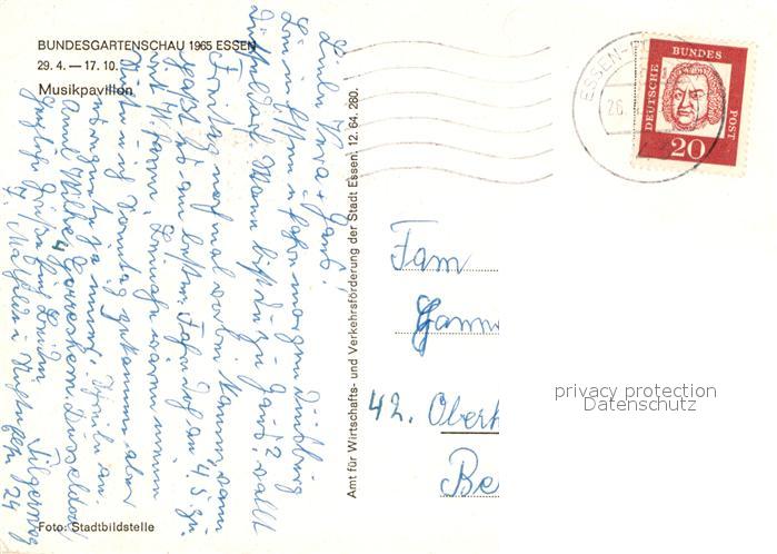 72965794 alte Postkarte Essen Ruhr Bundesgartenschau Musikpavillon postalisch gelaufen Erhaltung siehe scans [LiesaD40] KatCode: 11110005113000