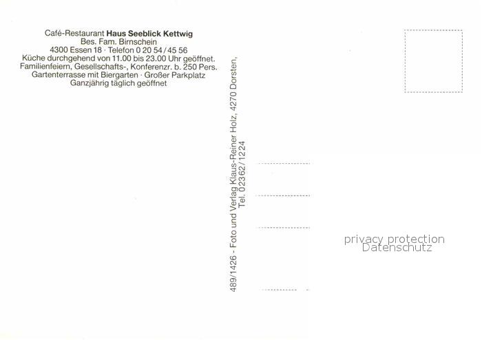 72896746 Essen Ruhr Cafe Restaurant Haus Seeblick Kettwig postalisch nicht gelaufen Erhaltung siehe scans [AndreD76] KatCode: 11110005113000