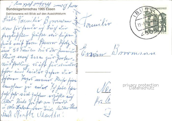 72370227 alte Postkarte Essen Ruhr Dahlienarena BUGA 1965 Aussichtsturm postalisch gelaufen Erhaltung siehe scans KatCode: 11110005113000