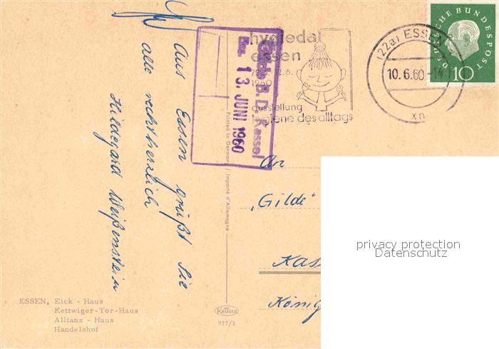 72888096 alte Postkarte Essen Ruhr Eick Haus Kettwiger Tor Haus Allianz Haus Handelshof postalisch gelaufen Erhaltung siehe scans [AndreD76] KatCode: 11110005113000
