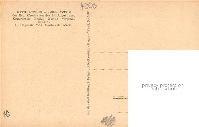 73692037 Essen Ruhr Eingang zum Spielplatz Katholisches Lyzeum und Oberlyzeum der Reg. Chorfrauen des hl. Augustinus postalisch nicht gelaufen Erhaltung siehe scans [FriedD77] KatCode: 11110005113000
