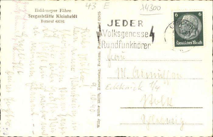 40753437 Essen Ruhr Essen [Stempelabschlag] See Gaststätte Baldeneyer Fähre x KatCode 11110005113000