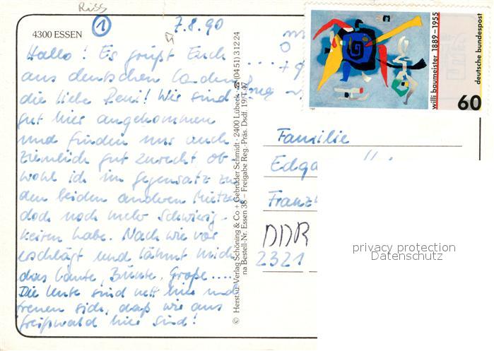 73010188 alte Postkarte Essen Ruhr Fliegeraufnahme postalisch gelaufen Erhaltung siehe scans [WerneD78] KatCode: 11110005113000