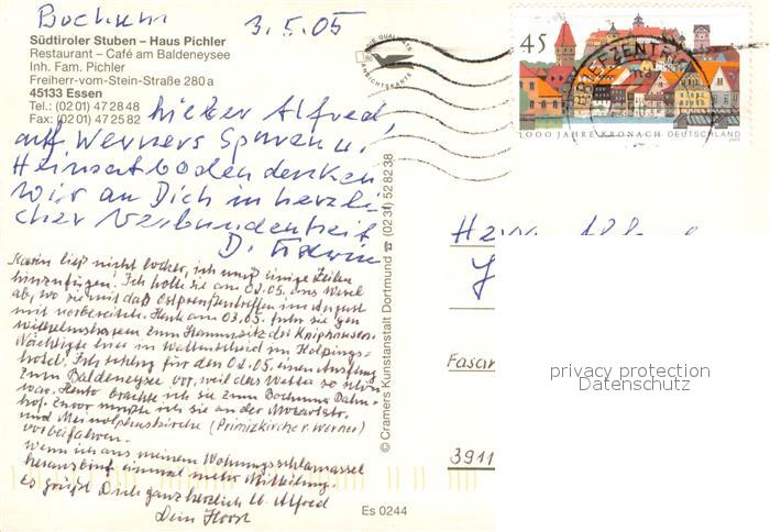 73621847 alte Postkarte Essen Ruhr Fliegeraufnahme S?dtiroler Stuben Haus Pichler postalisch gelaufen Erhaltung siehe scans [LiesaD40] KatCode: 11110005113000