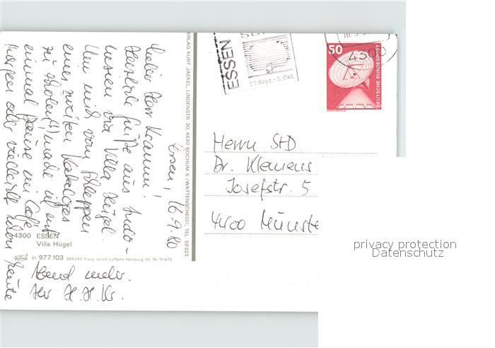 72432104 alte Postkarte Essen Ruhr Fliegeraufnahme Villa Huegel postalisch gelaufen Erhaltung siehe scans KatCode: 11110005113000