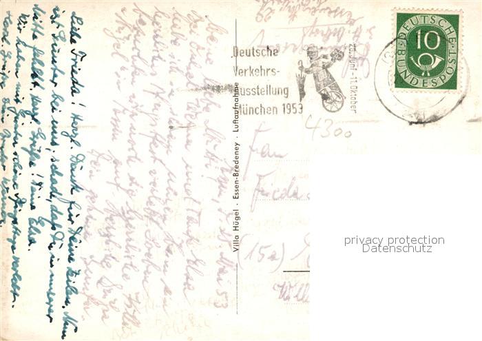 73317366 alte Postkarte Essen Ruhr Fliegeraufnahme Villa Huegel postalisch gelaufen Erhaltung siehe scans [KathaD81] KatCode: 11110005113000