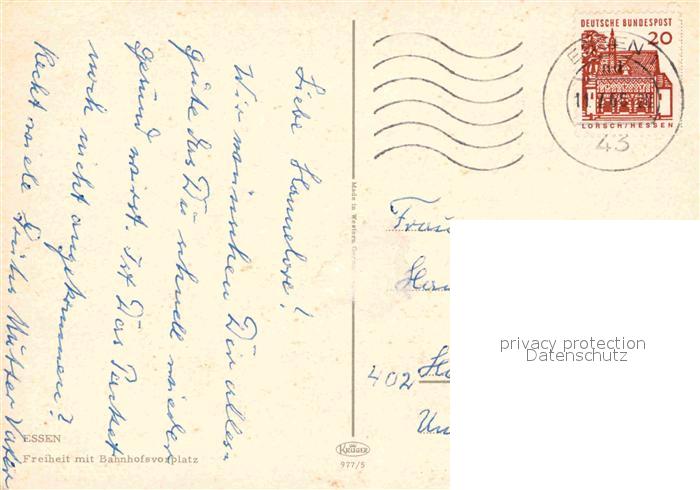 72843595 alte Postkarte Essen Ruhr Freiheit mit Bahnhofsvorplatz postalisch gelaufen Erhaltung siehe scans [LiesaD40] KatCode: 11110005113000