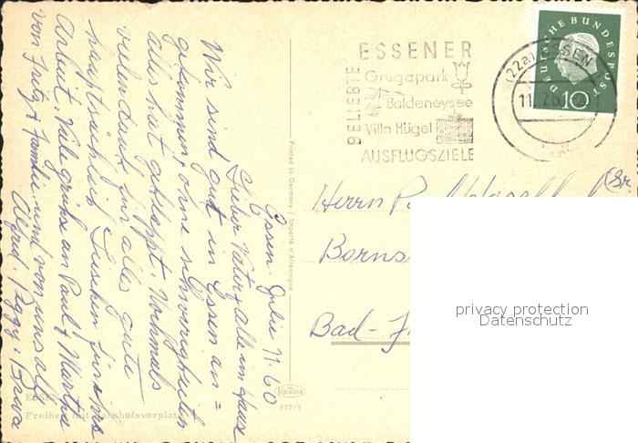 72356743 alte Postkarte Essen Ruhr Freiheit mit Bahnhofsvorplatz postalisch gelaufen Erhaltung siehe scans KatCode: 11110005113000