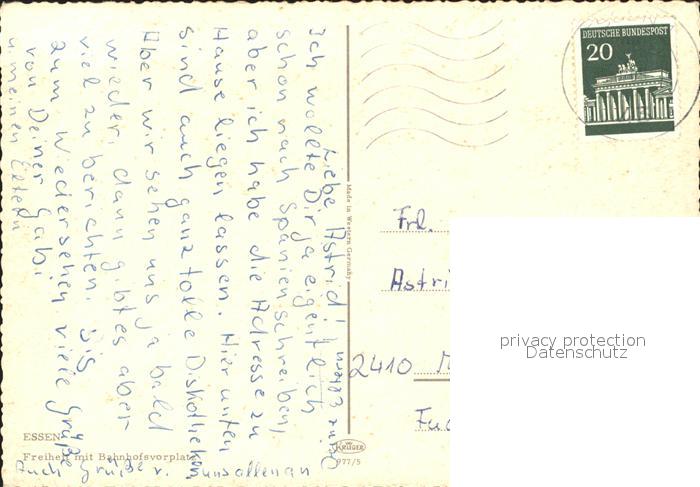 71924872 alte Postkarte Essen Ruhr Freiheit mit Bahnhofsvorplatz postalisch gelaufen Erhaltung siehe scans KatCode: 11110005113000