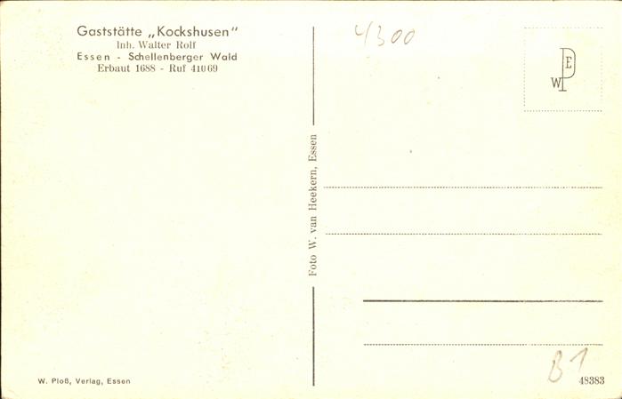 41334991 Essen Ruhr Gasstätte Kockshusen Walter Rolf Schellenberger Wald KatCode 11110005113000
