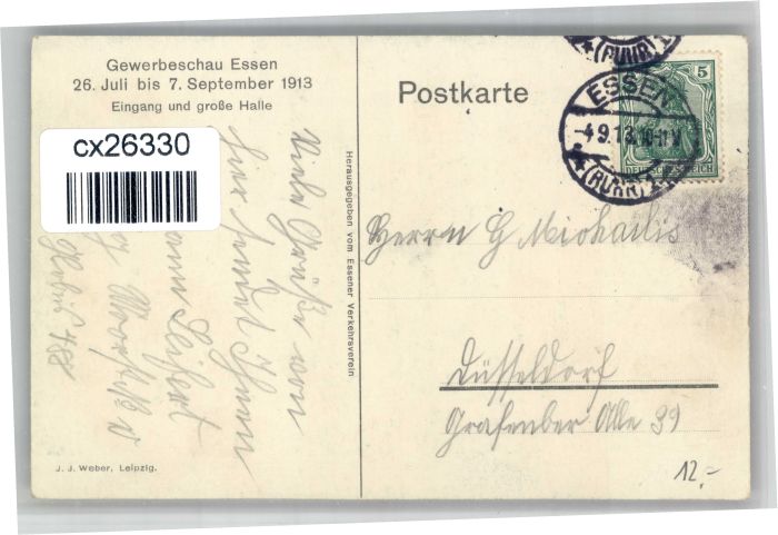 30838226 alte Postkarte Essen Ruhr Gewerbeschau Pferd Harke postalisch gelaufen KatCode: 11110005113000
