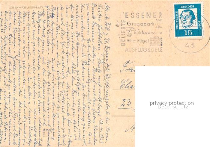 72965797 alte Postkarte Essen Ruhr Gildenplatz Brunnen postalisch gelaufen Erhaltung siehe scans [LiesaD40] KatCode: 11110005113000