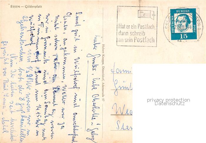 73123477 alte Postkarte Essen Ruhr Gildenplatz postalisch gelaufen Erhaltung siehe scans [PaolaD17] KatCode: 11110005113000