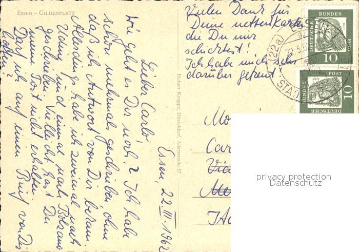 72146597 alte Postkarte Essen Ruhr Gildeplatz Brunnen postalisch gelaufen Erhaltung siehe scans KatCode: 11110005113000