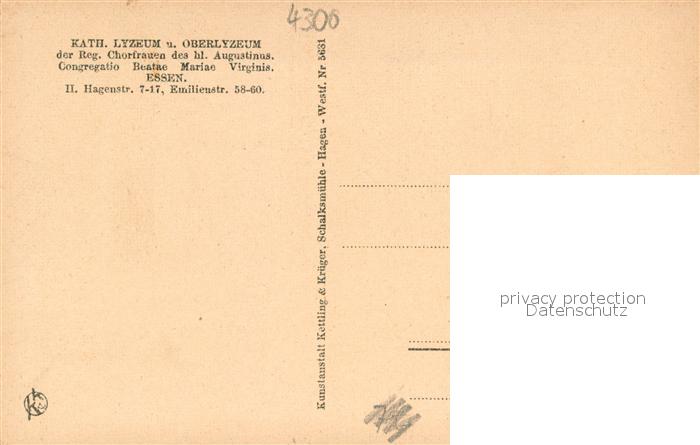 73692038 Essen Ruhr Gruenes Sprechzimmer Katholisches Lyzeum und Oberlyzeum der Reg. Chorfrauen des hl. Augustinus postalisch nicht gelaufen Erhaltung siehe scans [FriedD77] KatCode: 11110005113000