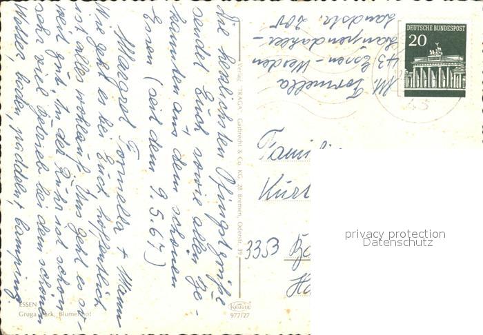 72235227 alte Postkarte Essen Ruhr Gruga Park Blumenhof postalisch gelaufen Erhaltung siehe scans KatCode: 11110005113000