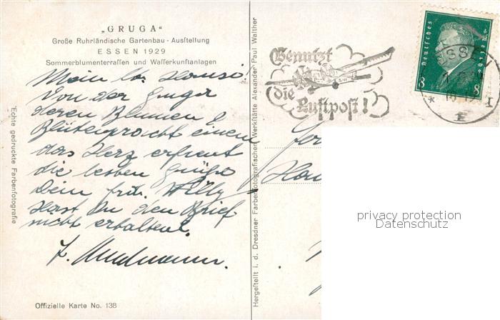 73777733 alte Postkarte Essen Ruhr Gruga Park Gr Ruhrlaendische Gartenbau Ausstellung Sommerblumenterrassen und Wasserkunstanlagen postalisch gelaufen Erhaltung siehe scans [WerneD78] KatCode: 11110005113000