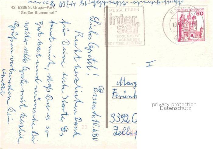 72903899 alte Postkarte Essen Ruhr Gruga Park Grosser Blumenhof postalisch gelaufen Erhaltung siehe scans [AndreD76] KatCode: 11110005113000