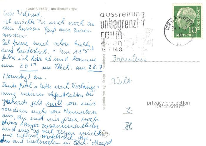 73001689 alte Postkarte Essen Ruhr Grugapark Blumenanger postalisch gelaufen Erhaltung siehe scans [AndreD76] KatCode: 11110005113000