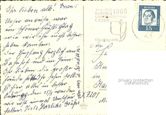 72272748 alte Postkarte Essen Ruhr Grugaturm Wasserspiele Fussgaengerzone Schleuse postalisch gelaufen Erhaltung siehe scans KatCode: 11110005113000
