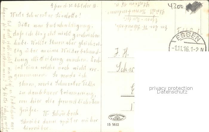 31821739 alte Postkarte Essen Ruhr Hoehere Maedchenschule am Bismarckplatz postalisch gelaufen Feldpost Erhaltung siehe scans KatCode: 11110005113000