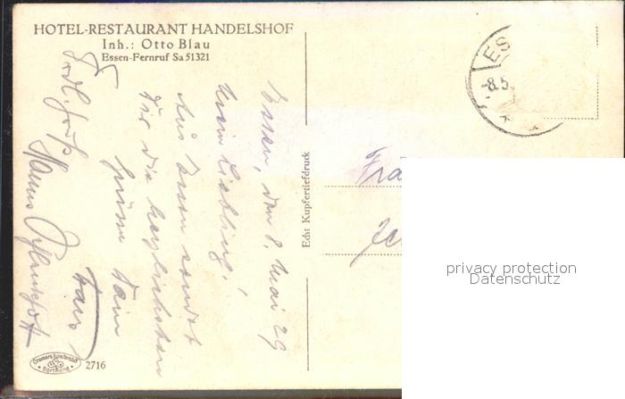 72147356 alte Postkarte Essen Ruhr Hotel Restaurant Handelshof postalisch gelaufen Erhaltung siehe scans KatCode: 11110005113000