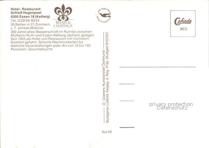 72415959 Essen Ruhr Hotel-Restaurant Scgloss Hugenpoet Kettwig postalisch nicht gelaufen Erhaltung siehe scans KatCode: 11110005113000