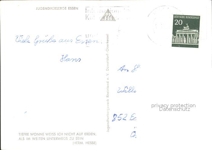 72064829 alte Postkarte Essen Ruhr Jugendherberge Gedicht Hermann Hesse postalisch gelaufen Erhaltung siehe scans KatCode: 11110005113000