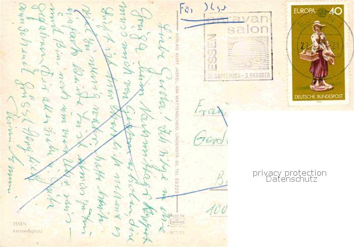72747244 alte Postkarte Essen Ruhr Kennedyplatz postalisch gelaufen Erhaltung siehe scans [LiesaD40] KatCode: 11110005113000