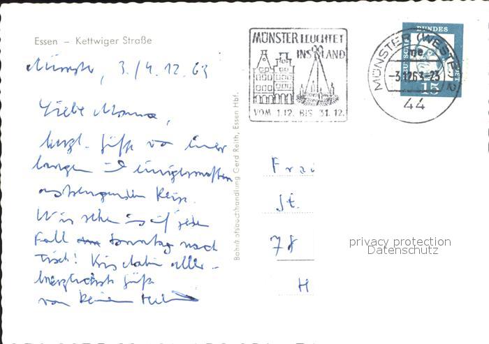 72032179 alte Postkarte Essen Ruhr Kettwiger Strasse Kirche postalisch gelaufen Erhaltung siehe scans KatCode: 11110005113000