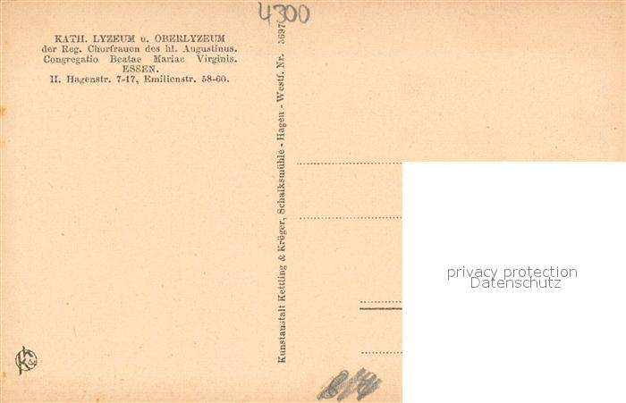 73692036 Essen Ruhr Klostergarten Katholisches Lyzeum und Oberlyzeum der Reg. Chorfrauen des hl. Augustinus postalisch nicht gelaufen Erhaltung siehe scans [FriedD77] KatCode: 11110005113000