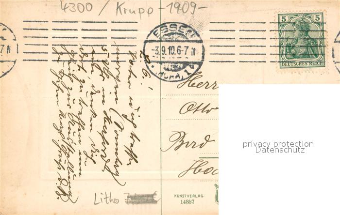 73754220 alte Postkarte Essen Ruhr Krupps Stammhaus postalisch gelaufen Erhaltung siehe scans [LiesaD40] KatCode: 11110005113000