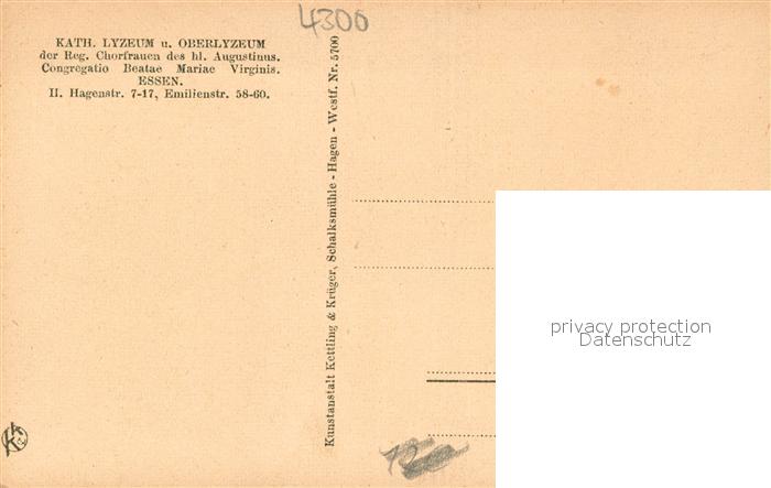 73754223 Essen Ruhr Lyzeum Emilienstrasse postalisch nicht gelaufen Erhaltung siehe scans [LiesaD40] KatCode: 11110005113000