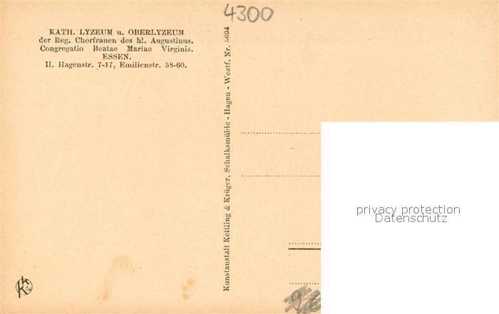 73754230 Essen Ruhr Lyzeum Neues Haus postalisch nicht gelaufen Erhaltung siehe scans [LiesaD40] KatCode: 11110005113000
