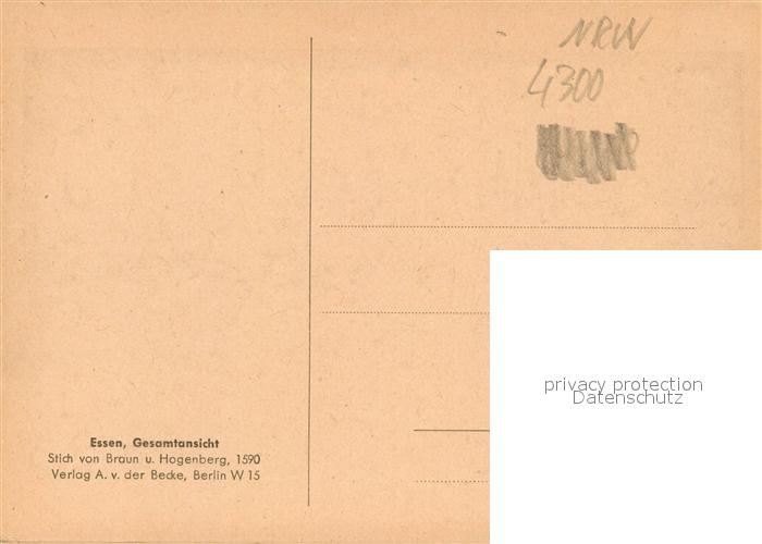 73030568 Essen Ruhr Panorama Stich von Braun von Hagenberg postalisch nicht gelaufen Erhaltung siehe scans [KathaD81] KatCode: 11110005113000
