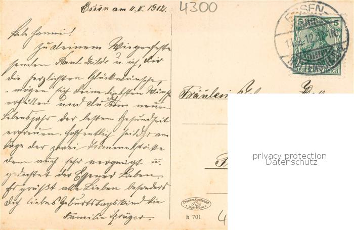 73692029 alte Postkarte Essen Ruhr Partie am alten Teich im Stadtgarten postalisch gelaufen Erhaltung siehe scans [FriedD77] KatCode: 11110005113000