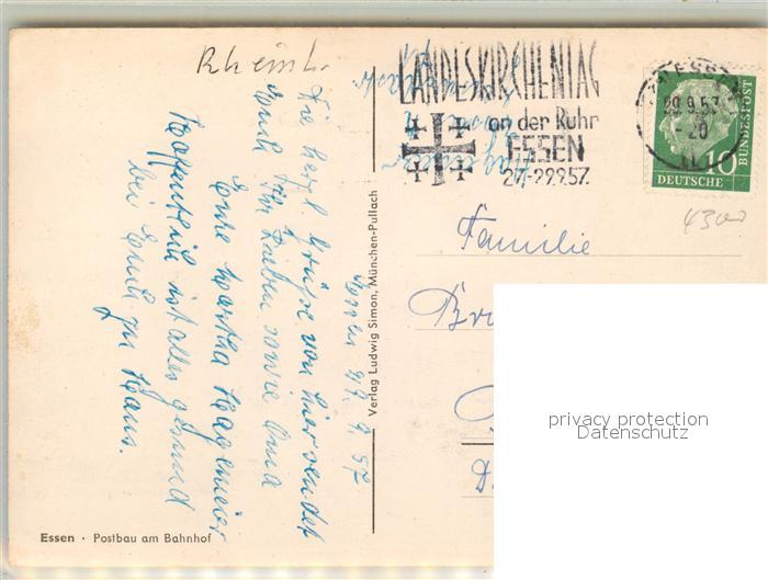 43343729 alte Postkarte Essen Ruhr Postbau am Bahnhof postalisch gelaufen Erhaltung siehe scans [WerneD78] KatCode: 11110005113000