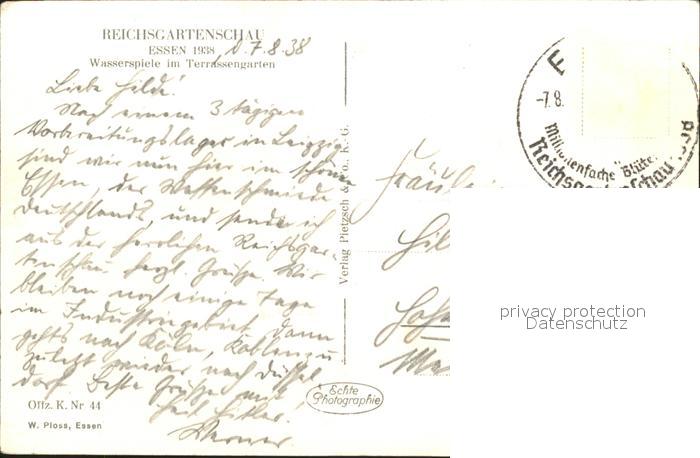 71867414 alte Postkarte Essen Ruhr Reichsgartenschau Wasserspiele im Terrassengarten postalisch gelaufen KatCode: 11110005113000