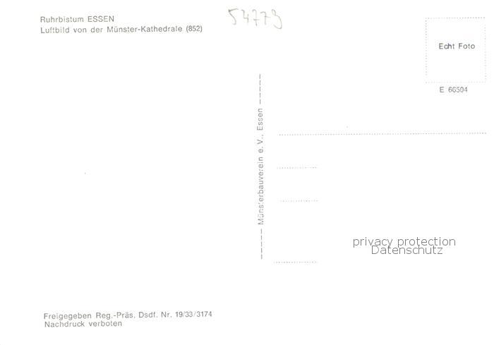 73832130 Essen Ruhr Ruhrbistum Essen Fliegeraufnahme von der Muenster Kathedrale postalisch nicht gelaufen Erhaltung siehe scans [WerneD78] KatCode: 11110005113000