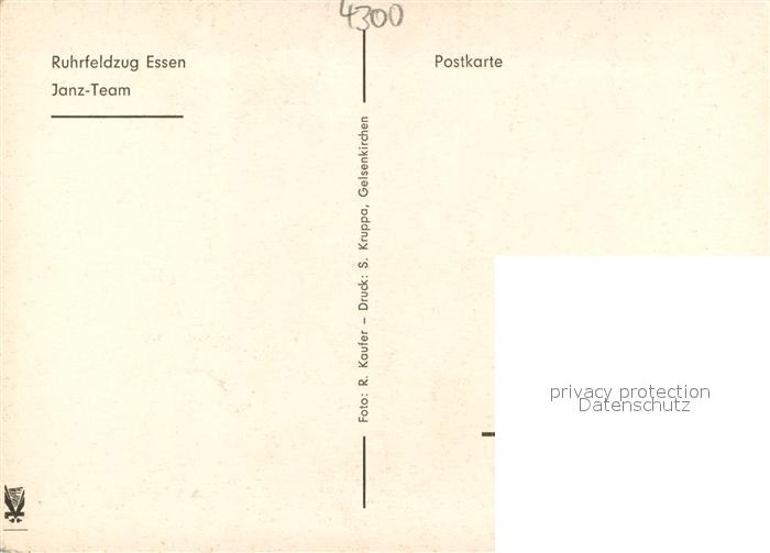 73754682 Essen Ruhr Ruhrfeldzug Janz-Team postalisch nicht gelaufen Erhaltung siehe scans [LiesaD40] KatCode: 11110005113000